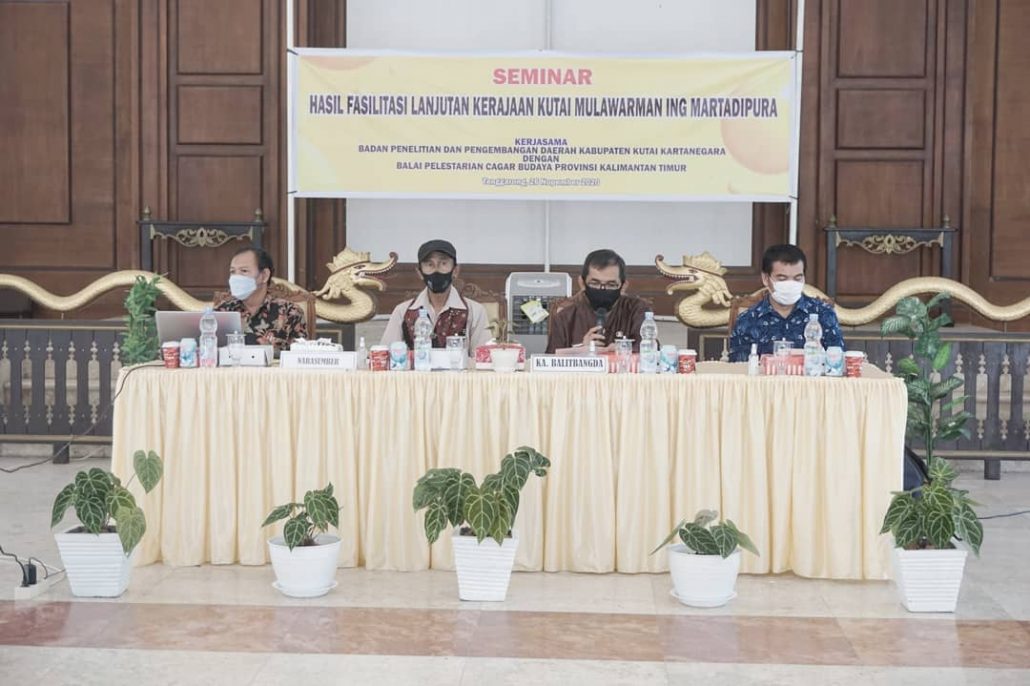 TENGGARONG – Badan Penelitian dan Pengembangan Daerah Kabupaten Kutai Kartanegara menggelar Seminar Hasil Kajian Fasilitasi Lanjutan Kerajaan Kutai Mulawarman Ing Martadipura, pada hari kamis 26 Nopember 2020 yang bertempat di Kedaton Kesultanan Kutai Kartanegara